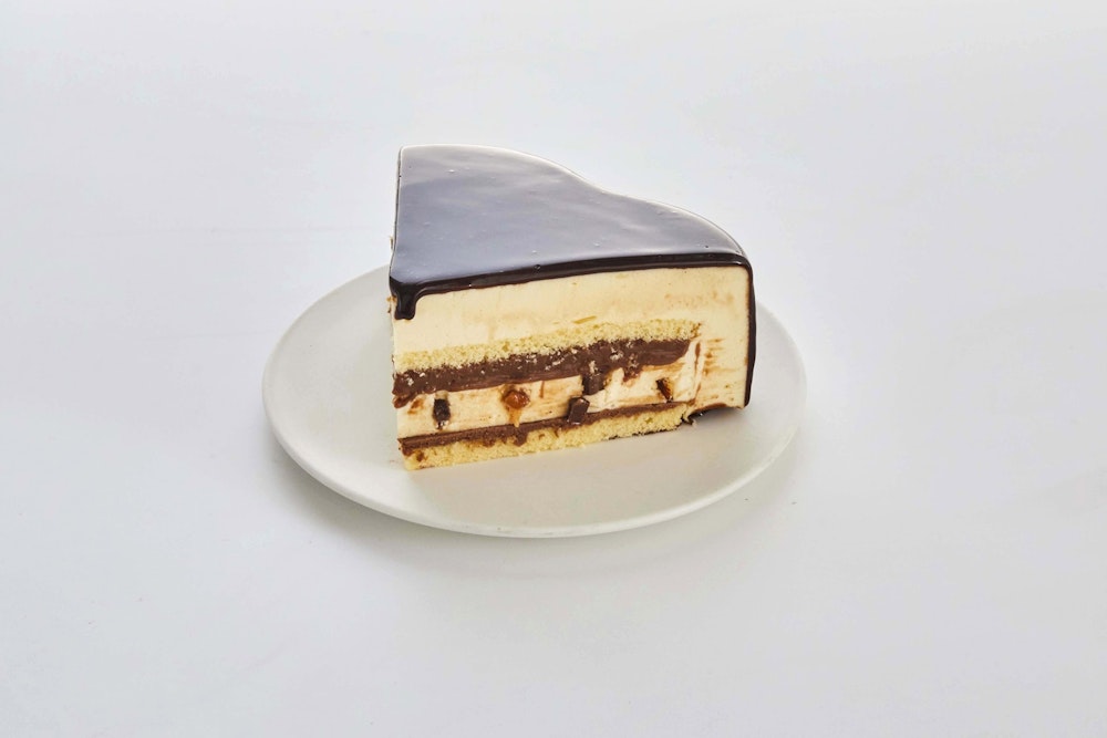 ふわふわのスポンジにアーモンドミルクやチョコレートのなめらかなムースを重ね、艶やかにコーティングしました。おいしさが生まれるまでの軌跡に思いを馳せながら、とろける繊細な口溶けのケーキを皆様でお楽しみください。