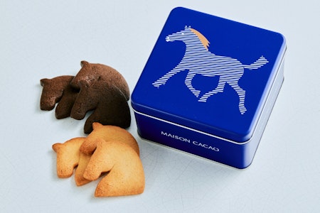 メゾンカカオを象徴する馬をモチーフにした、愛らしいサブレクッキー。鎌倉本店限定の一品です。ホワイトサブレはカカオバターとマルコナアーモンドでまろやかに、ブラックサブレはビターチョコレートとカカオパウダーで深いコクを表現しました。サクッと軽やかな食感に、素材の上質さがふわりと香る、贈り物にふさわしいサブレです。