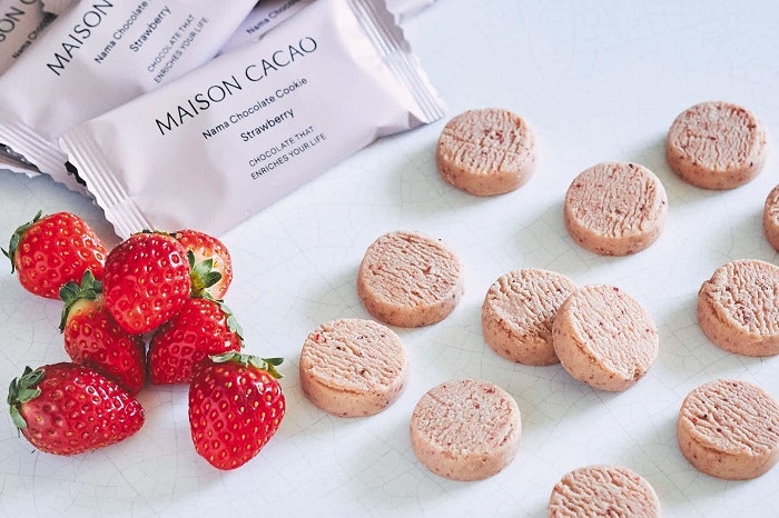 チョコレートと間違うほど、口どけなめらかな生チョコクッキーからもあまおうフレーバーが限定登場します。バニラや花の香りを持つ華やかなホワイトチョコレートにあまおうを合わせ、甘酸っぱさとあまおう本来の味わいの濃さを楽しめるクッキーです。