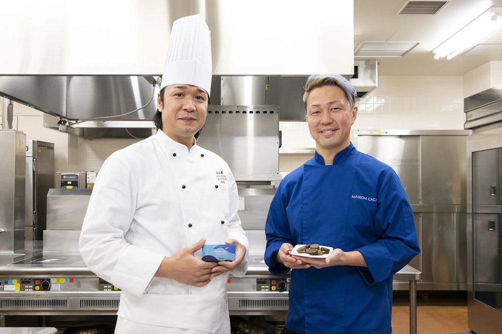 この度、「メゾンカカオ」は、「ANA」とコラボレーションし、2022年3月1日(火)より国内線プレミアムクラス機内食にて、ANA 限定の2種の生チョコクッキーをご提供いたします。機内から旅をより魅力的に、まだ出会っていない風景や香りを想像させる旅の序章となれば、そんな願いを込め、この限定スイーツは誕生しました。驚きの口溶け感と繊細な味わいを持つチョコレートスイーツです。ANAペストリーシェフの相田紀昭氏とMAISON CACAO創業者の石原紳伍による共演は、日本発信、未来を見据え世界に羽ばたく両ブランドこそが創れた、空の旅をより楽しめる一品です。