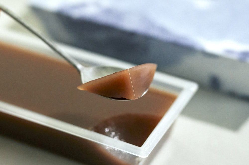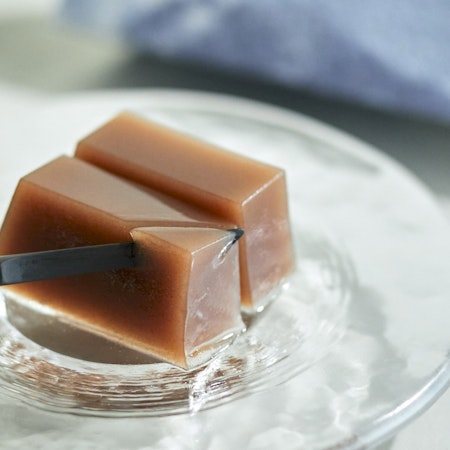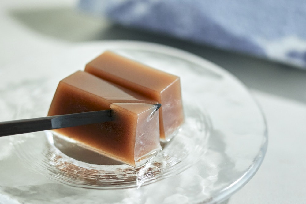 素材と手仕事にこだわり作り上げる水ようかんは、瑞々しく、つるんとなめらかな舌触りです。きめ細やかなこし餡と合わせるのはチョコレートの原料、カカオの香りと美味しさを抽出したカカオティ。上品な甘さと、奥深く広がるカカオの香りをお楽しみください。