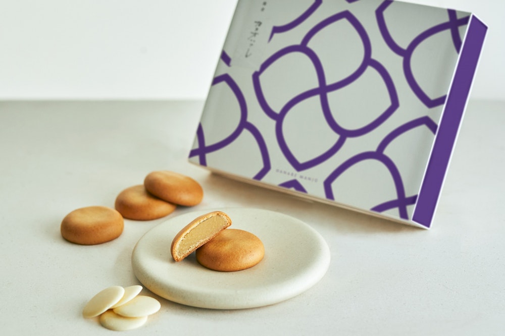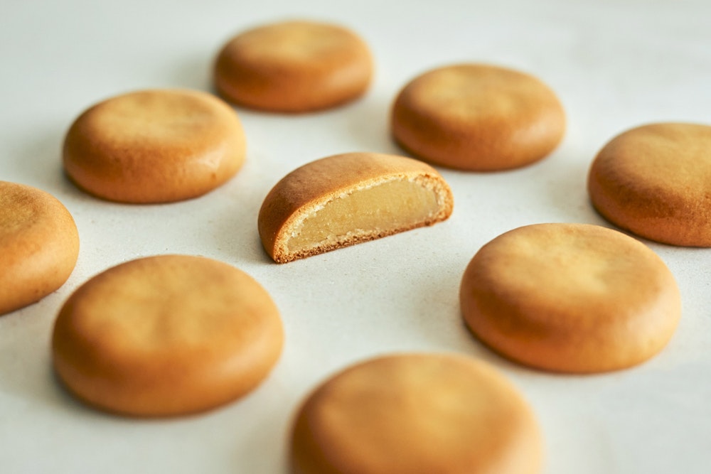 和と洋の融合で日本らしさを表現した饅頭は、シンプルながら幾重にも広がる味わいととろける口溶けが魅力の一品です。薄皮の中には、華やかな味わいのホワイトチョコレートと白餡、芋餡をたっぷりと。バター香る豊かな味わいです。
