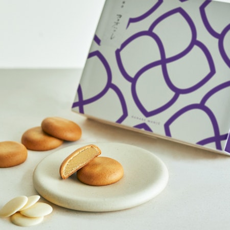和と洋の融合で日本らしさを表現した饅頭は、シンプルながら幾重にも広がる味わいととろける口溶けが魅力の一品です。薄皮の中には、華やかな味わいのホワイトチョコレートと白餡、芋餡をたっぷりと。バター香る豊かな味わいです。