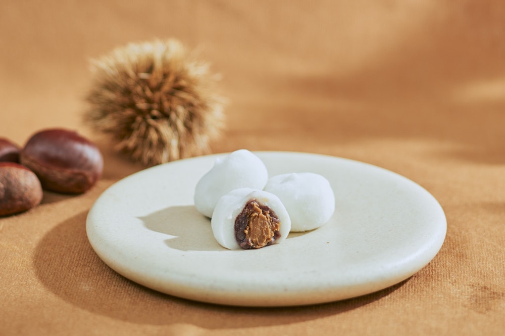 しっとりとした口溶けの柔らかな求肥の中に、小布施堂の深い味わいの和栗餡を合わせた秋の限定の一品。上品な味わいの大福です。