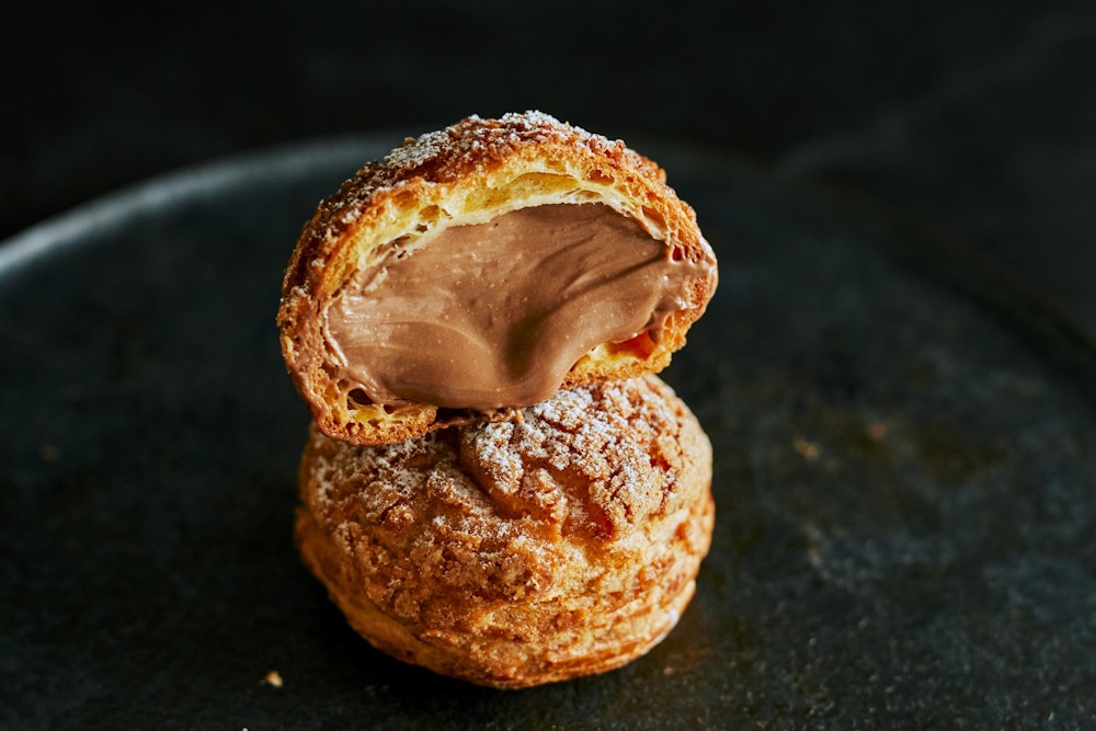香ばしいクッキーシュー生地のなかには、2種のコロンビア産ビターチョコレートを合わせたとろりとろけるチョコレートクリームがたっぷり。