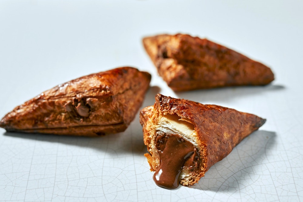 たっぷりのバターを練り込み、144層にも重ねた軽やかでサクサクの三角パイの中には、コロンビア産の香り高いミルクチョコレートを。中からとろりとろけ出します。