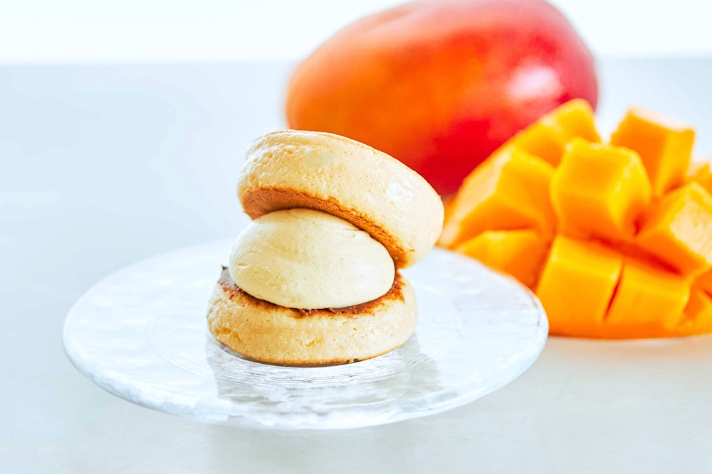 本みりんを使ったしっとり生地に特製の“チョコマンゴーあんこ”、アップルマンゴーの果肉、カカオのフルーツビネガー×マンゴーピューレの生クリームをのせた、ケーキみたいなどら焼きです。
