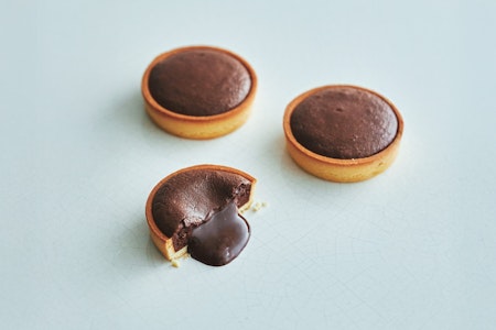軽やかな焼き加減にこだわったサクサクのタルト生地の中には、 トロッととろけるビターの生チョコレートのクリームを たっぷりと流し込んでいます。