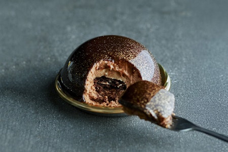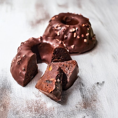 しっとりとなめらかなチョコレート生地に、ドライフルーツと ローストくるみを贅沢に合わせたクグロフ。外側はビターチョコレート で包み、深い香りと食感を楽しめるクリスマス時期限定の一品。