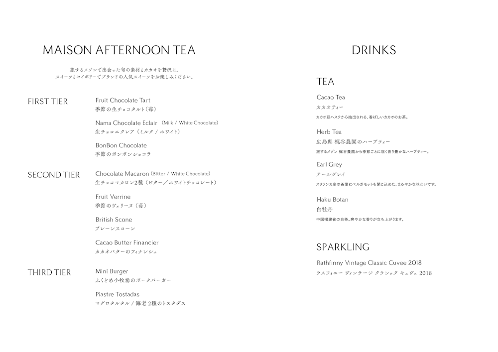 【メゾンカカオ鎌倉本店 店舗情報】フロア名称: MAISON CACAO 本店 3F営業時間: 13:00〜17:00※アフタヌーンティーご利用のみ、予約制 予約はこちらから住所: 神奈川県鎌倉市雪ノ下1丁目9-33(若宮大路沿い)オープン日: 2025年11月21日(金)