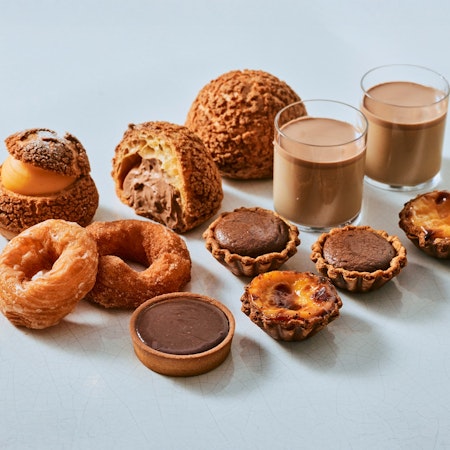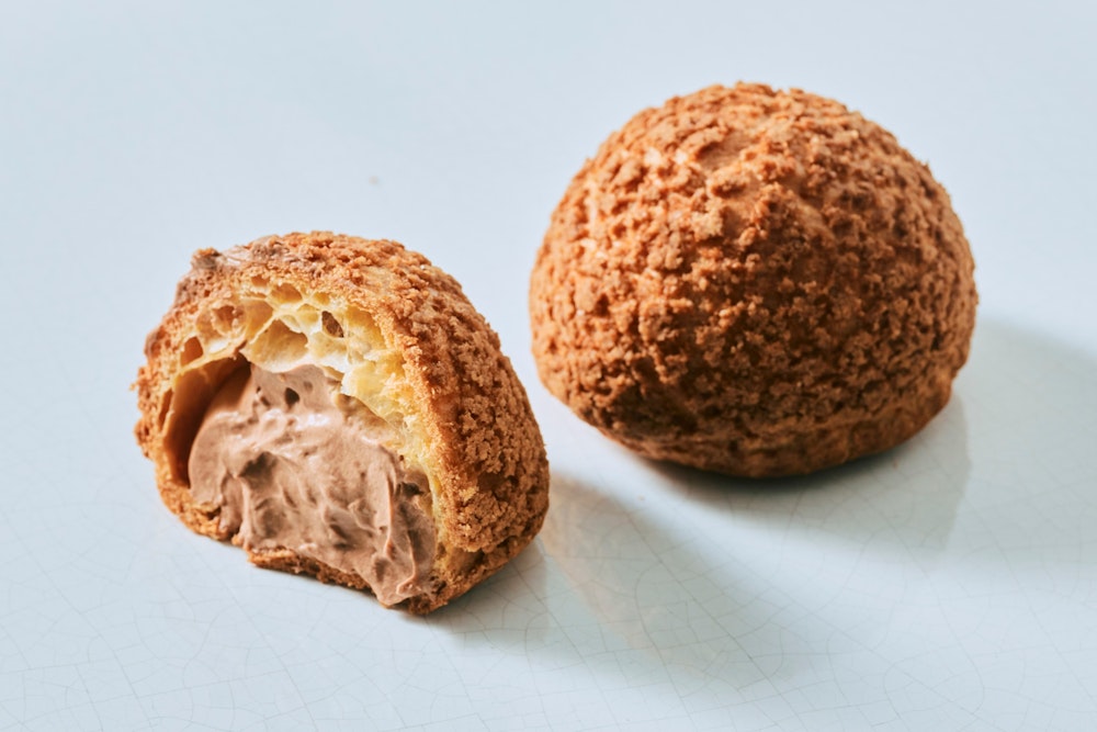 メゾンカカオから初登場する生シュークリーム。軽やかなシュー生地の中に、口溶けなめらかなバニラカスタードと生チョコカスタードを絞りました。