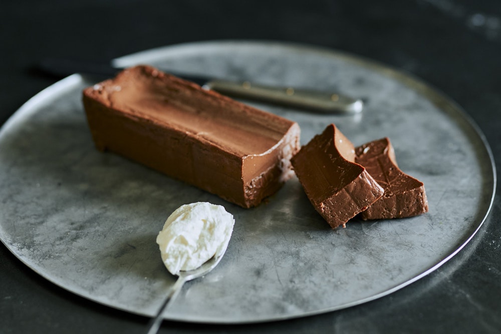 焼き上げた時に⾹り⽴ち、味わいが奥深く広がる2種のビターチョコレートを厳選して使⽤しています。今回の新作はよりビターチョコレートの⾹りを華やかに引き出すため、隠し味にキャラメルとアマレットを合わせました。