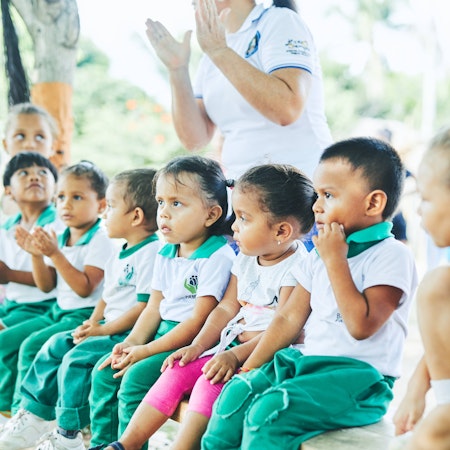 農園の開拓の次に石原が取り組んだのが教育だ。管理農園の近くには家庭の事情や経済的な理由で、学校に通えない子どもたちが数多くいた。その子どもたちのために学校を開設するべく石原は奔走する。「2016年にネコクリに学校を開きました。とはいえ、最初はトタン屋根だけの空間に、市内から先生を招くので精一杯。生徒も30人ほどの小さな学校でした」。2年後の2018年にようやく建物が完成すると、生徒数も一気に増加する。その頃、現地での活動がコロンビア政府に評価され、外国企業としては初となる政府公認の認定マークを得たことで、地域との結びつきはさらに深まる。放課後はカカオ栽培の勉強会のため、親世代にも開放されるようになった。