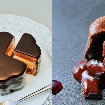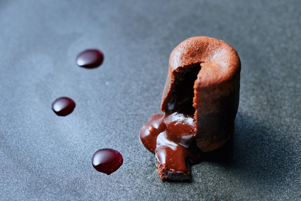 ショコラティエがその日ごとに焼き加減を調整し、自立しているのがやっとな程のレア感。添えられたジュレやソースと合わせて、味わいの変化もお楽しみください。ご注文をいただいてから焼き上げます。