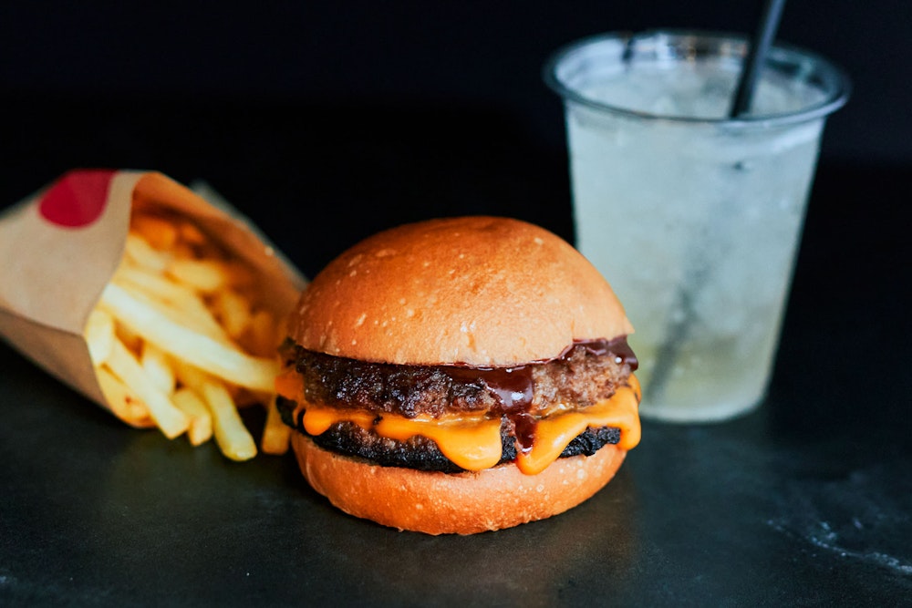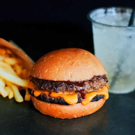 ビーフバーガーはふんわりもちもちのバンズの中に、肉汁滴る和牛のパテとカカオを使用した味わい深いモレソースを添えて。