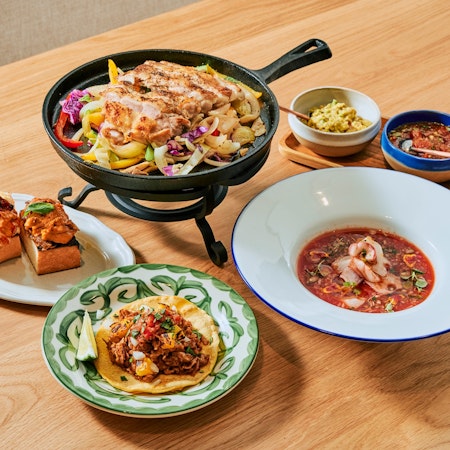 「メゾンカカオ 鎌倉本店」の最上階に、メキシカン・フレンチレストラン「PIASTRE(ピアストル)」が誕生します。日が沈み、ネオンが灯るとともに幕をあけるレストランは、メゾンカカオのスピリットが息づくコロンビア、フランス、日本、3つの文化が“食”を通してひとつに溶け合う場所です。鎌倉野菜や駿河湾の魚介、旬の食材を贅沢に用い、和の繊細な感性を重ねたメキシカン・フレンチ。ラテン料理の自由な発想を軸に、香ばしく焼き上げたトスタダス、新鮮なセビーチェ、季節のタコス、そしてカカオモーレ香るステーキまで。素材と文化が自由に交わり、新しい味の景色が広がります。