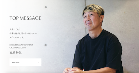 今回新たに公開した創業者・石原紳伍のインタビューでは、ブランドの創業背景から未来への構想、そして“これからどんな仲間と未来を創りたいか”を語っています。ブランドをつくるのは、チョコレートだけでなく“人”そのもの。働く一人ひとりの人生が豊かになるような体験や挑戦を応援し、「人づくり=ブランドづくり」という思想を改めて表現しました。