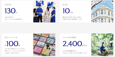 新たに加わった“数字で見るメゾンカカオ”では、ブランドのカルチャー・社員構成・キャリアステップなどを数値で紹介。感性のブランドでありながら、リアルなデータを通じて誠実に企業文化を伝える構成としています。
