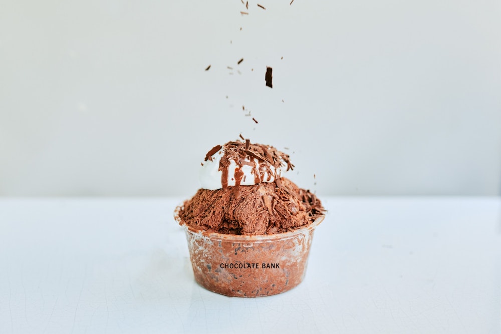 チョコレートの原料であり、スーパーフードとして注目されるカカオ豆の胚乳部分の”カカオニブ”をすりつぶした”カカオマス”が主役のかき氷です。カカオの香りと味わいが凝縮したカカオマスと牛乳を合わせたオリジナルの氷を作り、薄く削ることで、冷たいチョコレートをそのまま頬張っているような濃厚な一品が完成しました。コロンビアの自社管理農園でカカオの栽培から取り組むブランドならではのクリエイションです。