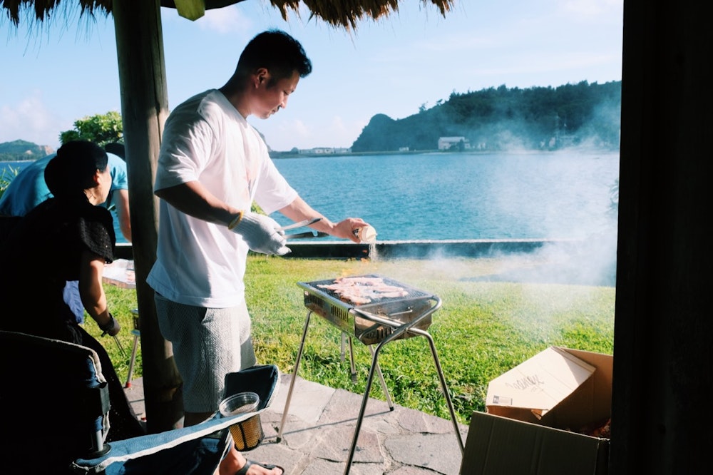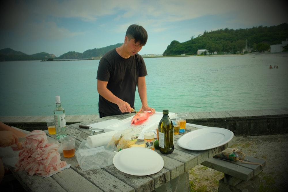 夜には全員で海辺のBBQ。事前に準備した食材と、農家さんに分けて頂いた野菜や果物、メンバーが釣ってきた魚を使って、小笠原ならではの幸を楽しみました。3日目にはみんな手慣れたもので、ROBBのスペシャリテの1つ、魚のベニエまでもがBBQに登場するほど、全員がBBQマスターと化していました!笑