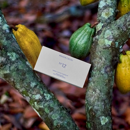 No.12は新たなブレンドを探求することで、カカオの素材由来のフレッシュな味わいと、チョコレートの濃厚でまろやかな甘みを表現しました。発酵と焙煎にこだわり、キャラメルやナッツの香ばしさとわずかなスパイス感を引き出したミルクチョコレートに、カカオニブをそのまますりつぶした”カカオマス”を合わせました。甘みとストレートなピター感が融合し、味わうごとに余韻が広がる一品です。